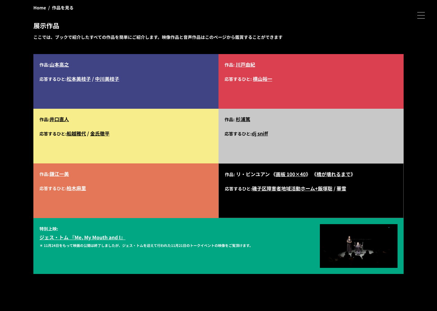 ヨコハマ・パラトリエンナーレ2020のブックプロジェクトのウェブサイトを担当しました。Youtube 動画と合わせて作品を楽しんでいただけるよう、動画の再生位置に合わせてサイトのリンク先が変化する作りとなっています。アクセシビリティにも配慮した作りを目指しました。